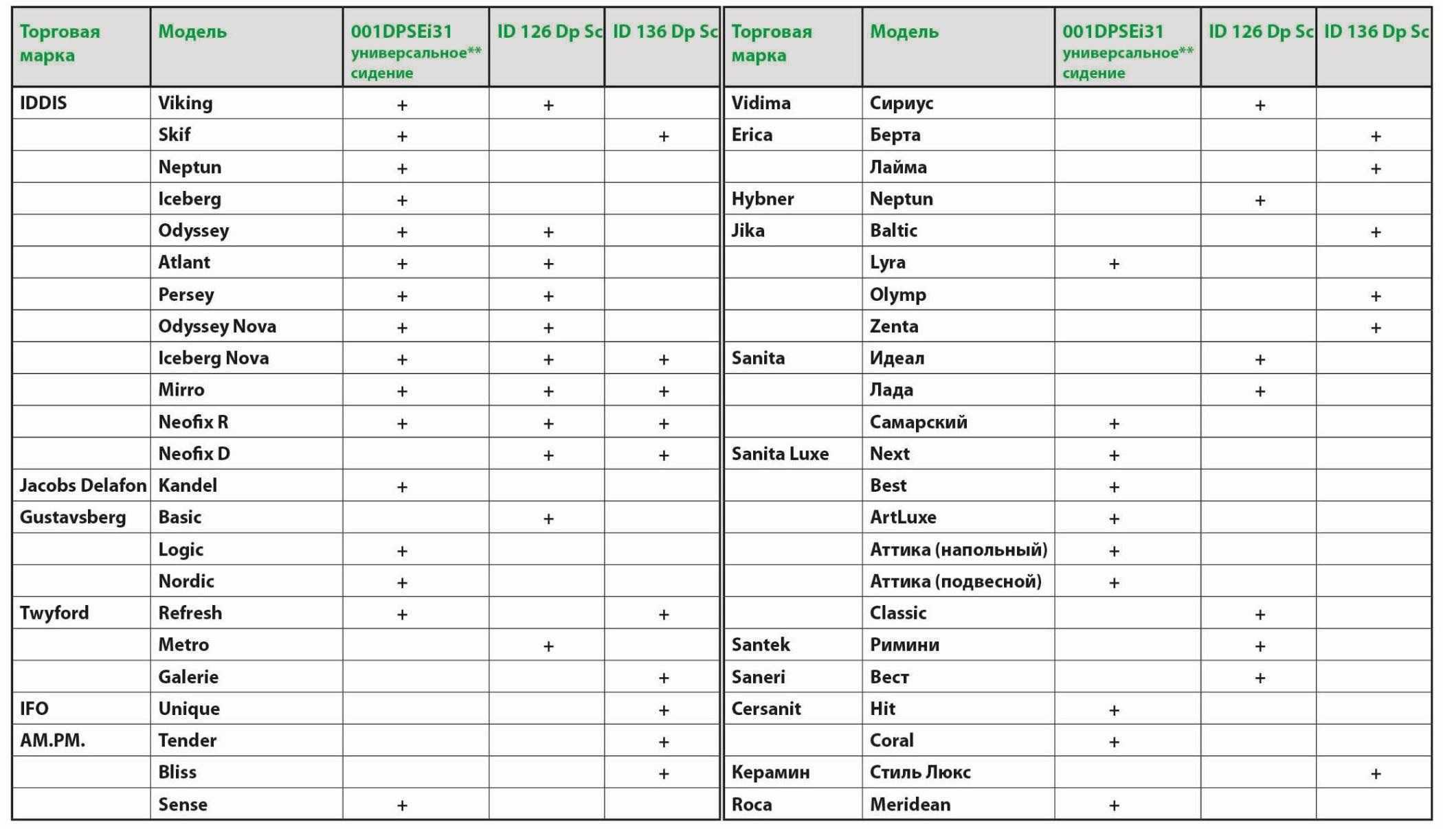 Универсальное сиденье IDDIS® подходит под большинство унитазов, представленных на рынке. Сиденье выполнено из высококачественного дюропласта – материала, обладающего антибактериальными свойствами и стойкостью к царапинам и механическому воздействию. Универсальное сиденье IDDIS оснащено системой Easy Fix, которая позволяет с легкостью устанавливать и снимать сиденье при уборке, а также системой Soft Close, которое обеспечивают плавное и бесшумное закрытие крышки и сиденья. Проверить, подходит ли универсальное сиденье IDDIS к вашему унитазу, можно в таблице соответствия, либо исходя из сравнения размеров чаши унитаза с размерами сиденья (см.чертеж).