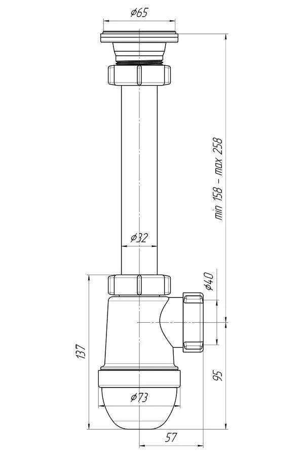 Сифон 32 мм. (1 1/4"*40 мм.) бутылочный АНИ с выпуском 1 1/4"*65 мм. АНИ пласт (C1000)