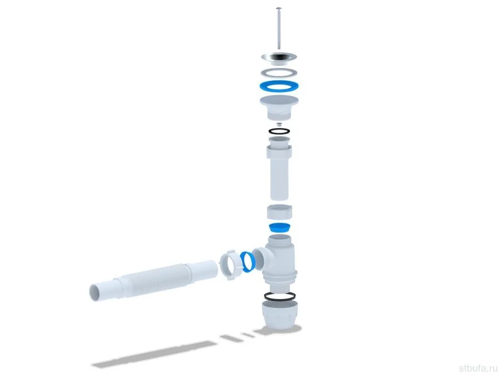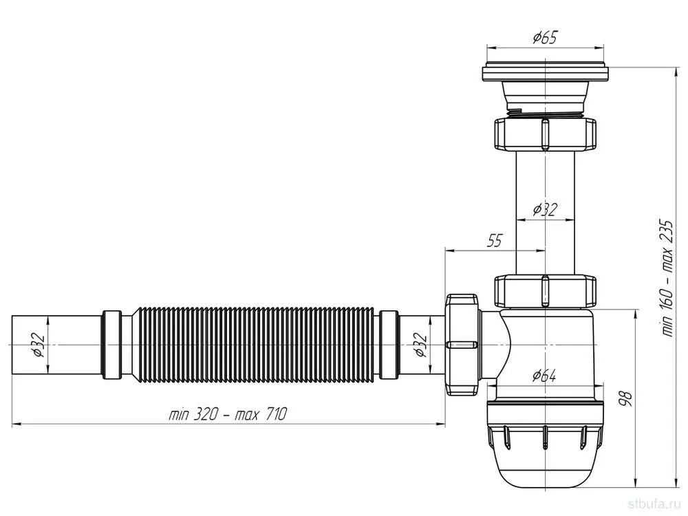 Сифон для умывальника бутылочного типа с уменьшенным корпусом. С нержавеющей решеткой 65мм. Для подключения к канализации комплектуется гибкой трубой 32*32мм
