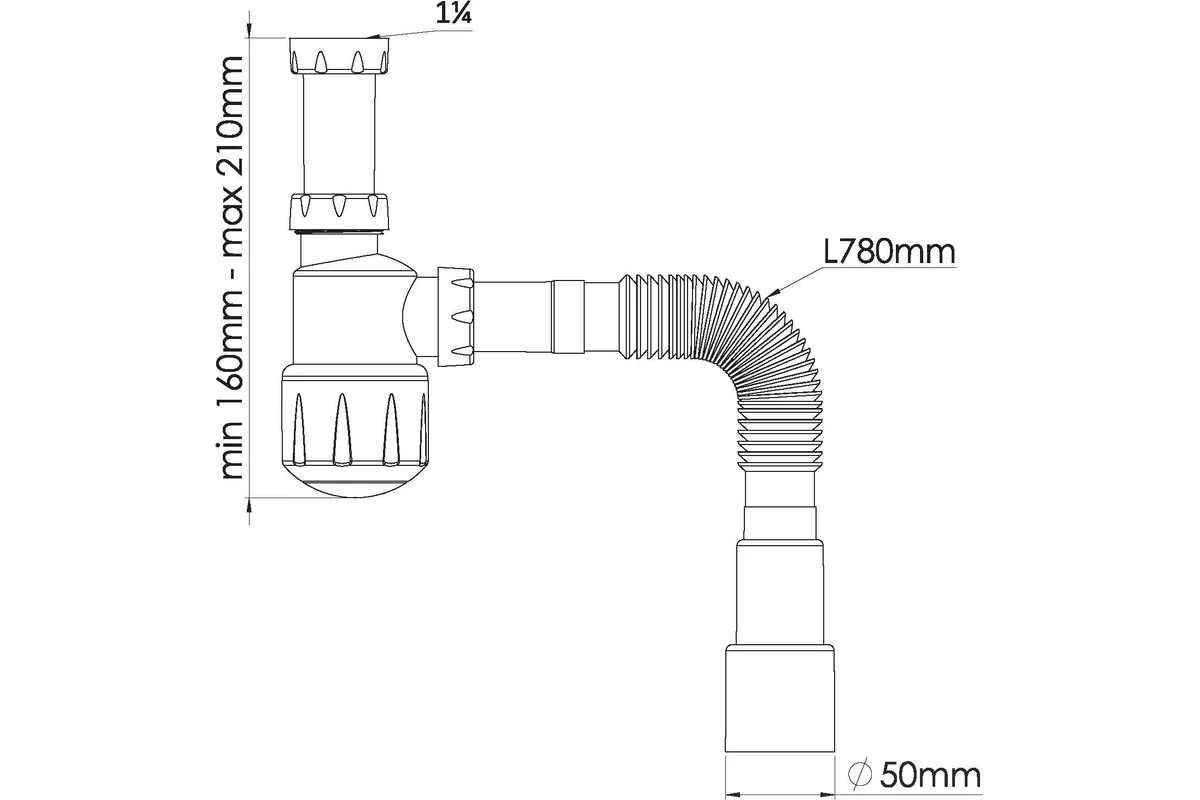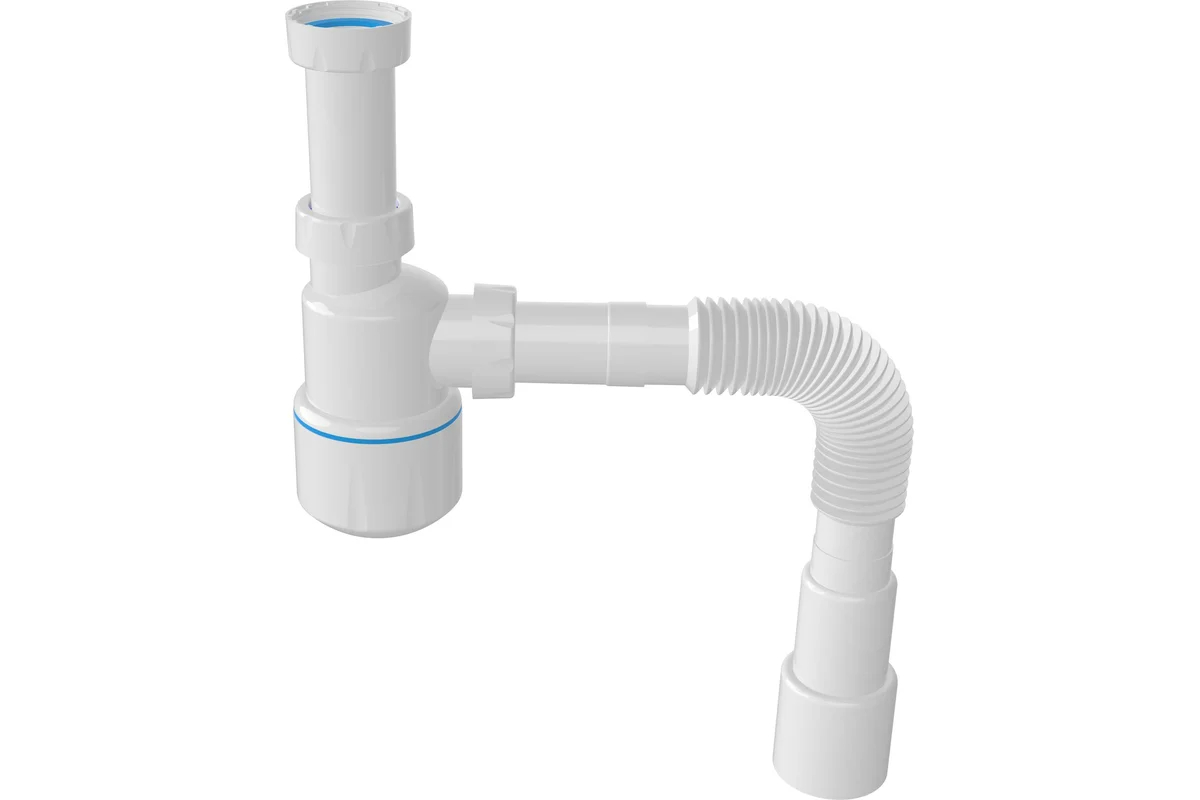 Сифон 32 мм бутылочный Nova для донного клапана (без выпуска) с гибкой трубой 1 1/4"х40/50) (1011)