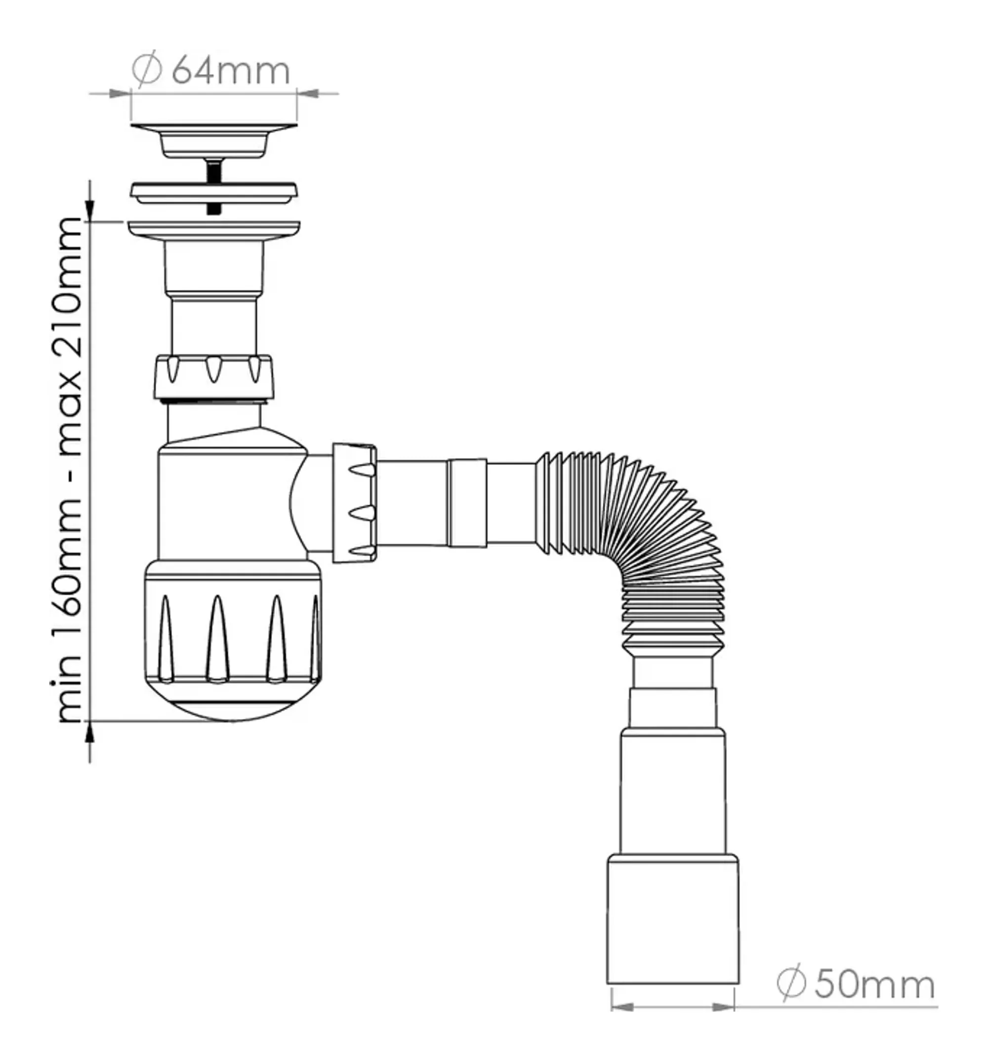 Сифон 32 мм. для биде Nova с выпуском 1 1/4"х65 с гибкой трубой 1 1/4"х40/50 (1055)