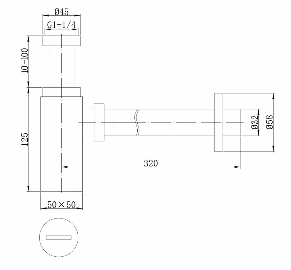 Сифон 32 мм. для донного клапана с отводом Vieir (латунь, белый, прямоугольный) (VRQ47YF)