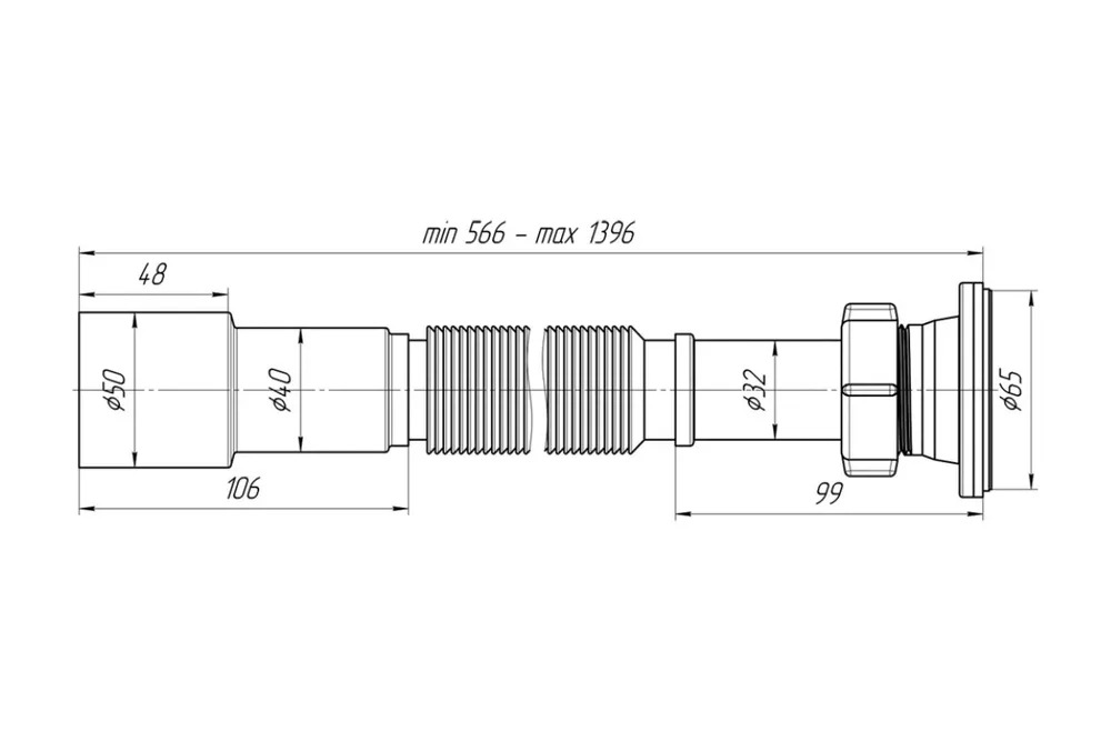 Сифон 32 мм. гофрированный с выпуском 1 1/4"(65 мм.)*40/50 АНИ удлиненный (566-1396 мм.) АНИ пласт (G216)