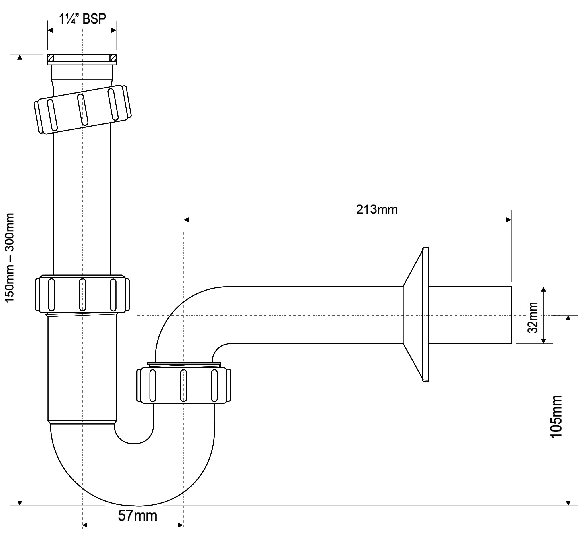 Сифон 32 мм. трубный Р-образный для донного клапана c отводом McAlpine (MRW8)