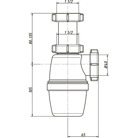 Сифон 40 мм. бутылочный АНИ "Грот" с 2-мя выпусками 1 1/2"*70 и отводом для стир.машины (разноуровневый) АНИ пласт (A4000)