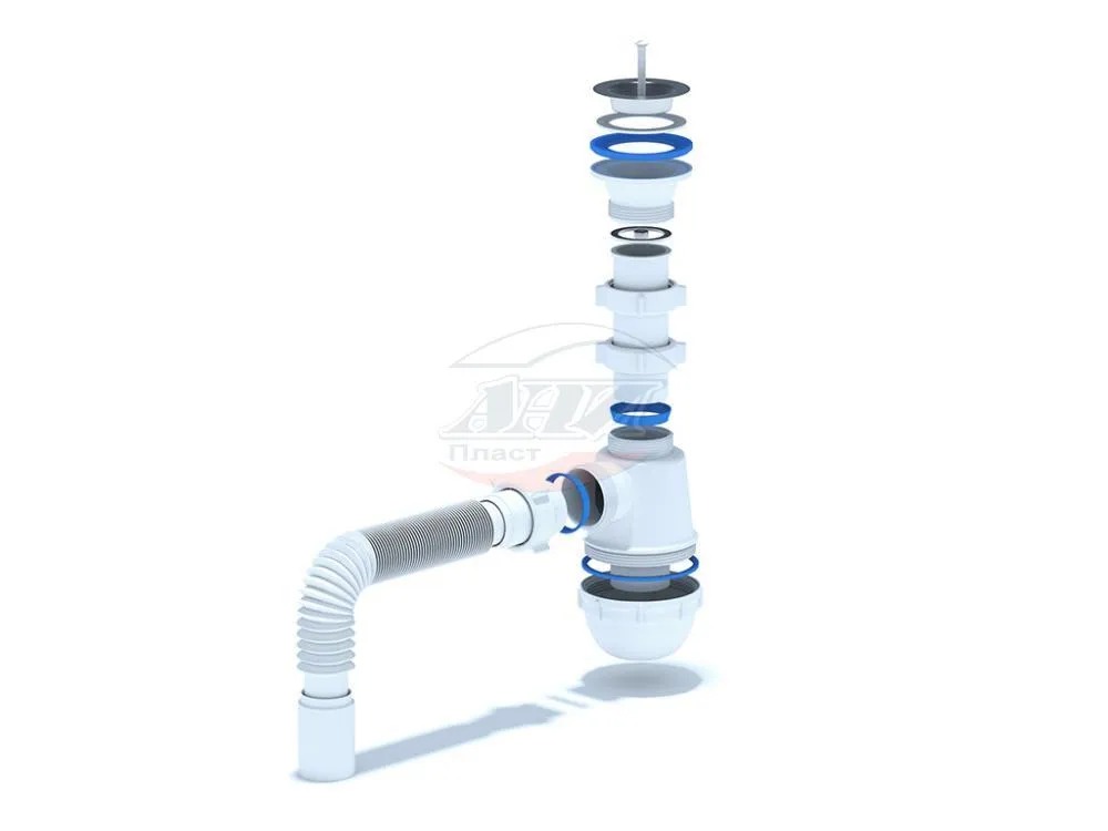 • Сифон сливной АНИ пласт A0105 для кухонных моек с диаметром сливного отверстия 50мм