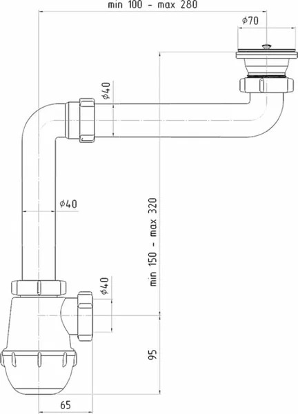 • Тип сифона: бутылочный