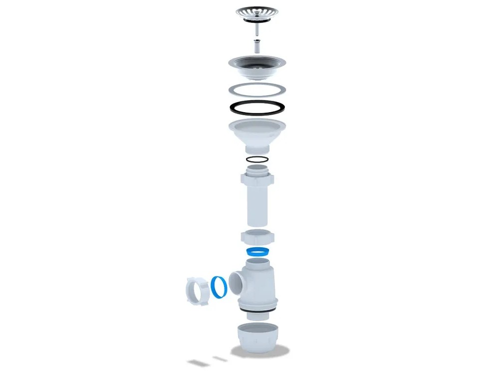 • Сифон сливной АНИ пласт A0150 для кухонных моек с диаметром сливного отверстия 90-98 мм