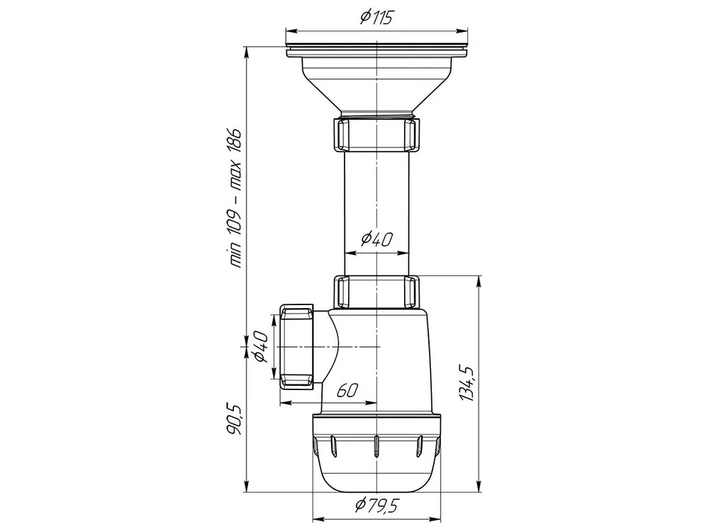 • Тип сифона: бутылочный, с увеличенным корпусом