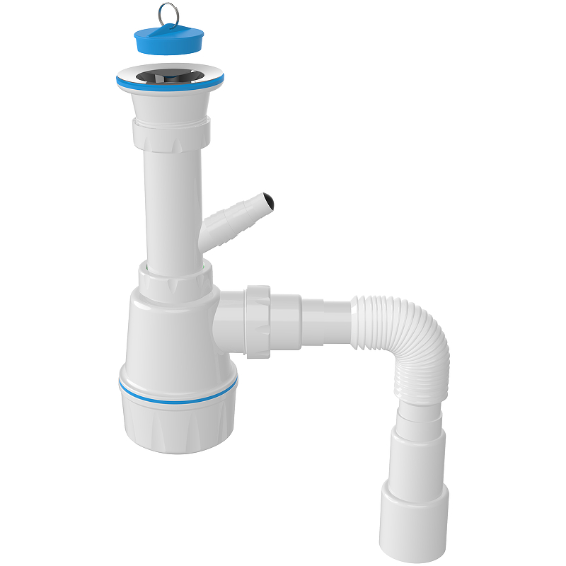 Корпус и гофротруба сифона изготовлены из высококачественного первичного полипропилена на современном оборудовании. Металлическая часть выпуска сифона и болт изготовлены из нержавеющей стали марки AISI 304, обеспечивает невозможность их окисления. Конструктивной особенностью гайки является то, что она выполнена из латуни и имеет резьбу для крепления к корпусу выпуска сифона, болт в выпуске выполнен из нержавеющей стали 304 марки.