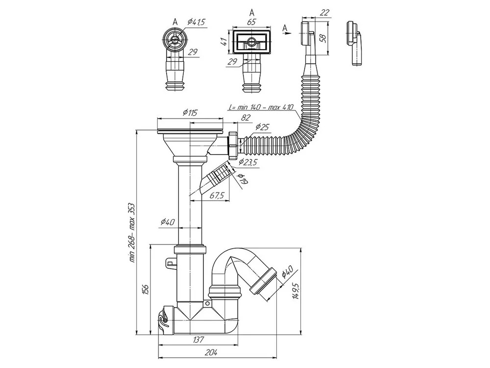 Сифон прямоточный для кухонной мойки с инновационным затвором . Сифоны группы «F»-сифон без гаек. Сифон F1045S с разборным выпуском и нержавеющей решеткой, с отводом для подключения бытовой техники. С гибким круглым и прямоугольным переливом для моек из композитных материалов. Выход для подключения к канализации 40мм. Величина гидрозатвора 65 мм. Комплектация F1045S: Выпуск 3 1/2” (90мм)