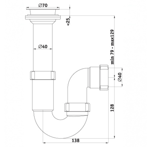 Сифон 40 мм. трубный АНИ с литым выпуском 1 1/2"*70 мм. АНИ пласт (D0500)