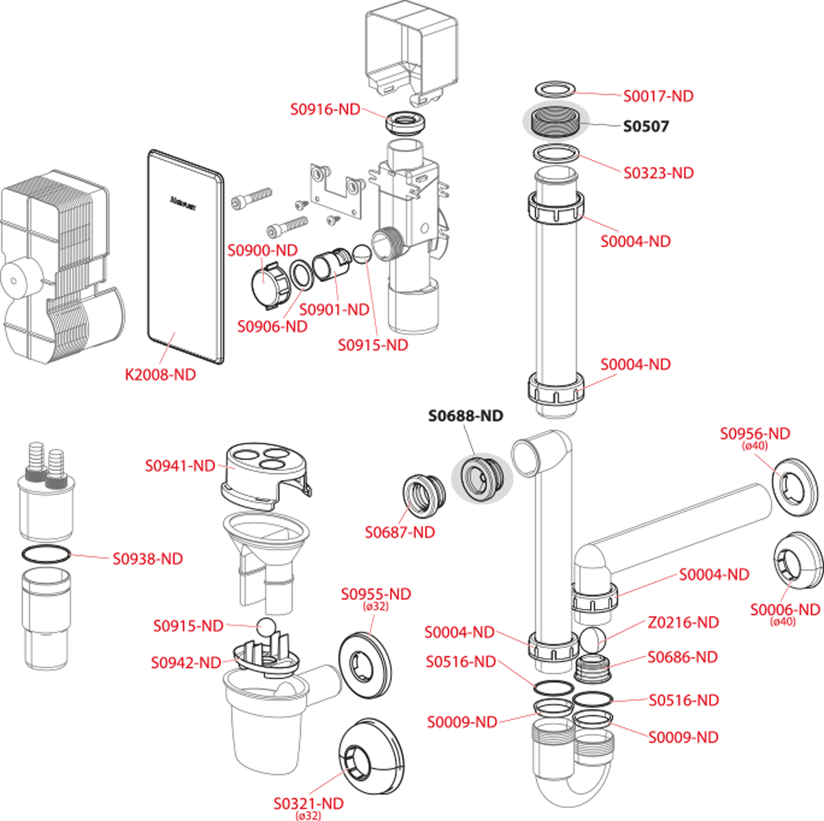 Подключение к стоковой трубе 32 мм.