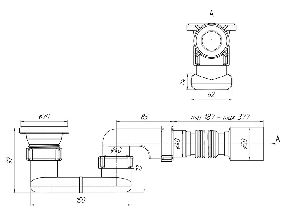 • Комплектуется гибкой трубкой 40*50 мм для отвода в канализацию