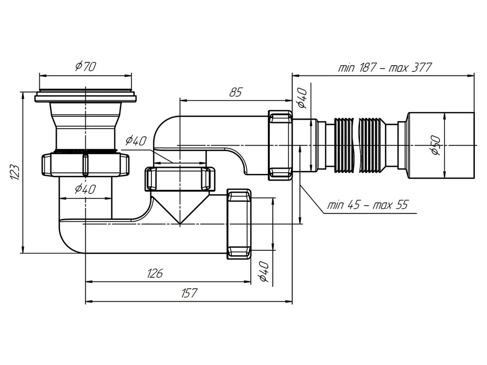 .Комплектация: сифон с выпуском, гофротруба 40х50 мм, упаковка