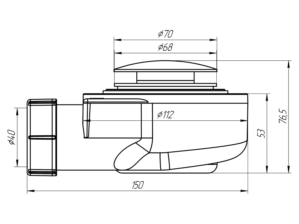 Сифон для душевого поддона со сливным отверстием 50мм. Монтажная высота 53мм