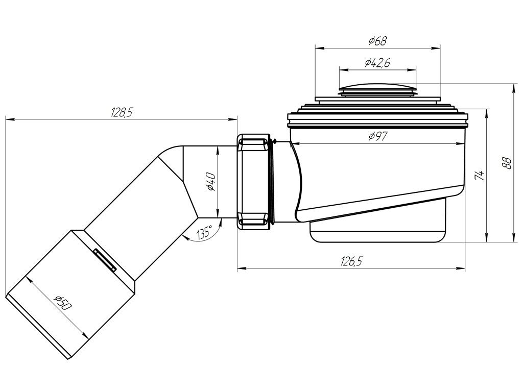 Сифон для душевого поддона. Монтажная высота 77мм