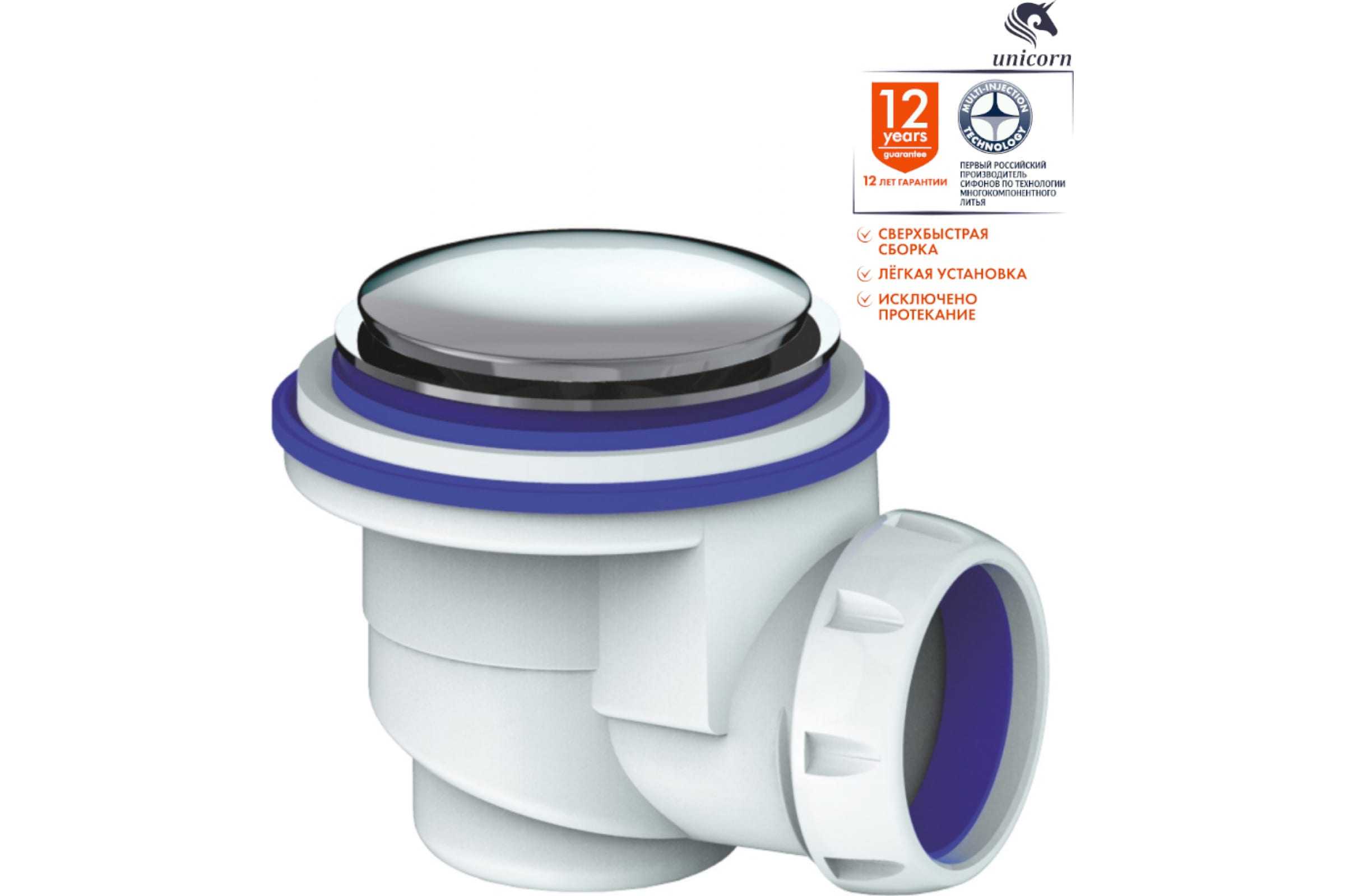 Сифон для душевого поддона Unicorn система easyopen, хром выпуск, диаметр 65 G422E ИС.