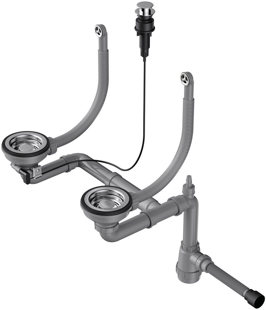 Арматура для двухчашевых моек с круглыми переливами и клапаном-автомат WK-2-R-IN-A