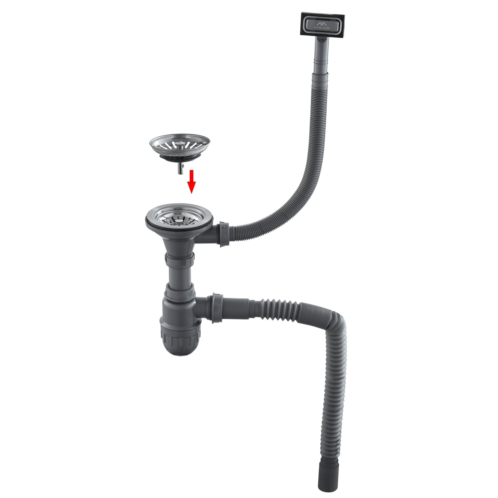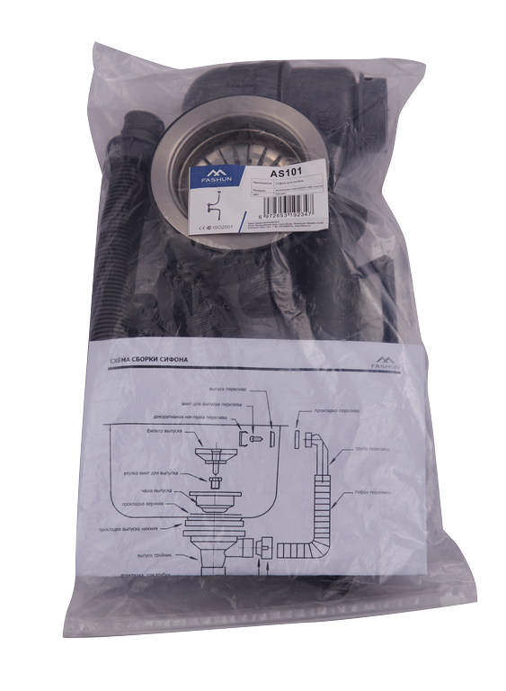 Сифон для мойки Fashun с переливом усиленный ABS пластик/нерж. сталь серый/сатин (AS101)