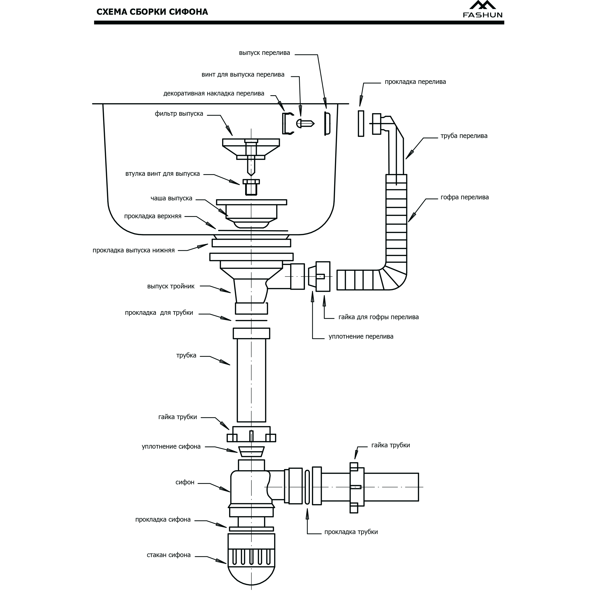 сифон для кухонной мойки с переливом усиленный