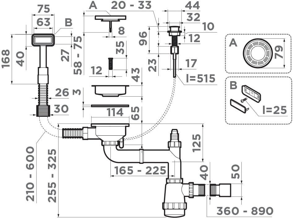 Арматура для одночашевых моек с прямоугольным переливом, декоративной решеткой и клапаном-автомат. Подходит для моек из серий TAKI, AKISAME, OMI, TADZAVA И KATA (необходимо купить универсальный перелив).