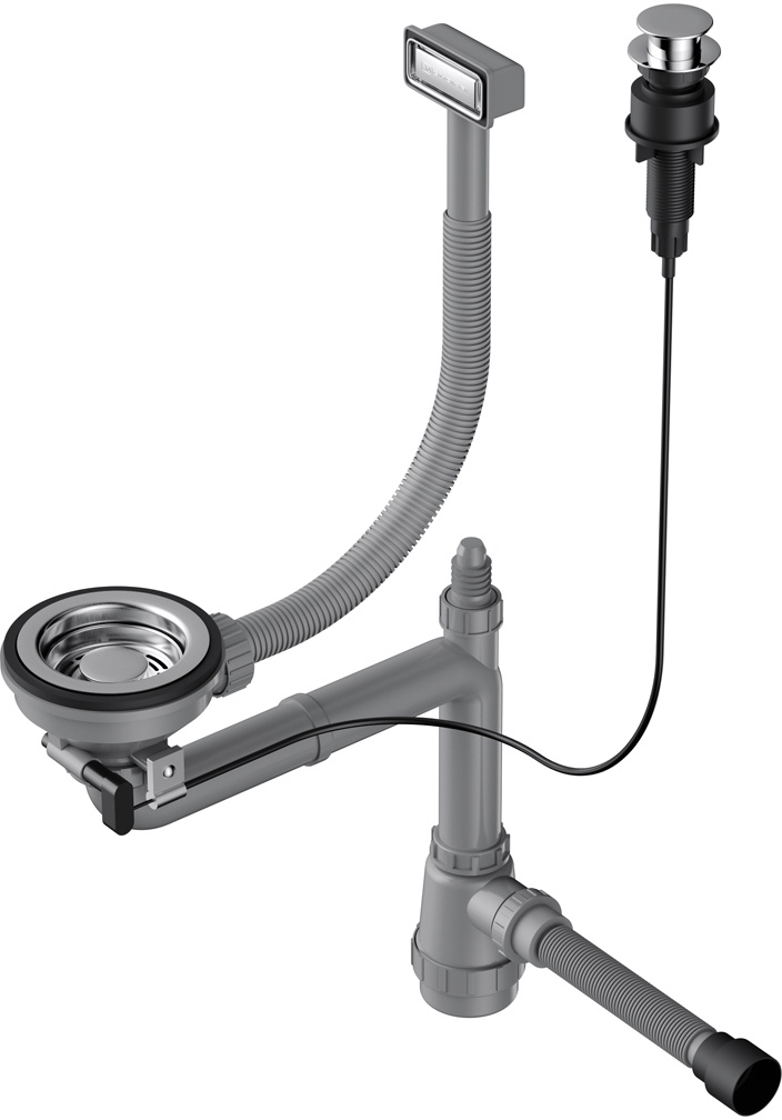 Арматура для одночашевых моек с прямоугольным переливом, декоративной решеткой и клапаном-автомат. Подходит для моек из серий TAKI, AKISAME, OMI, TADZAVA И KATA (необходимо купить универсальный перелив).