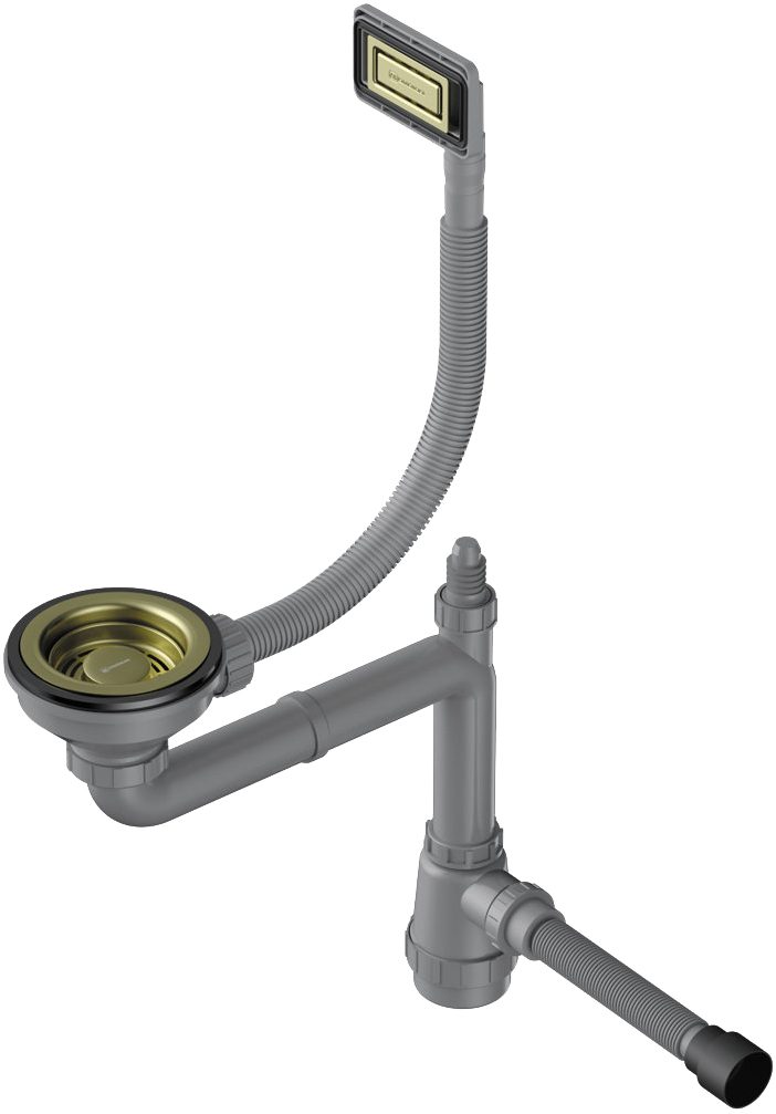 Сифон для мойки Omoikiri с универсальным прямоугольным переливом WK-1-UN-LG светлое золото (4956832)
