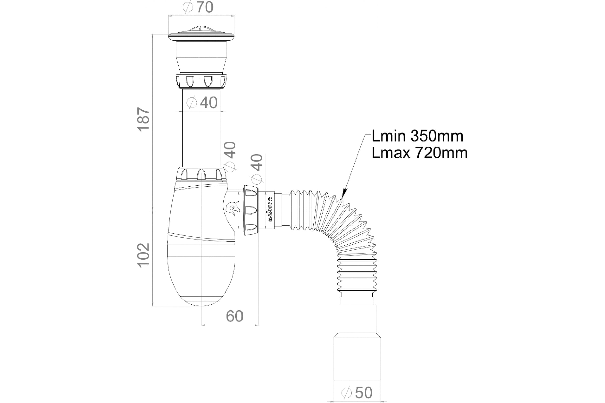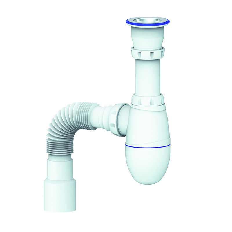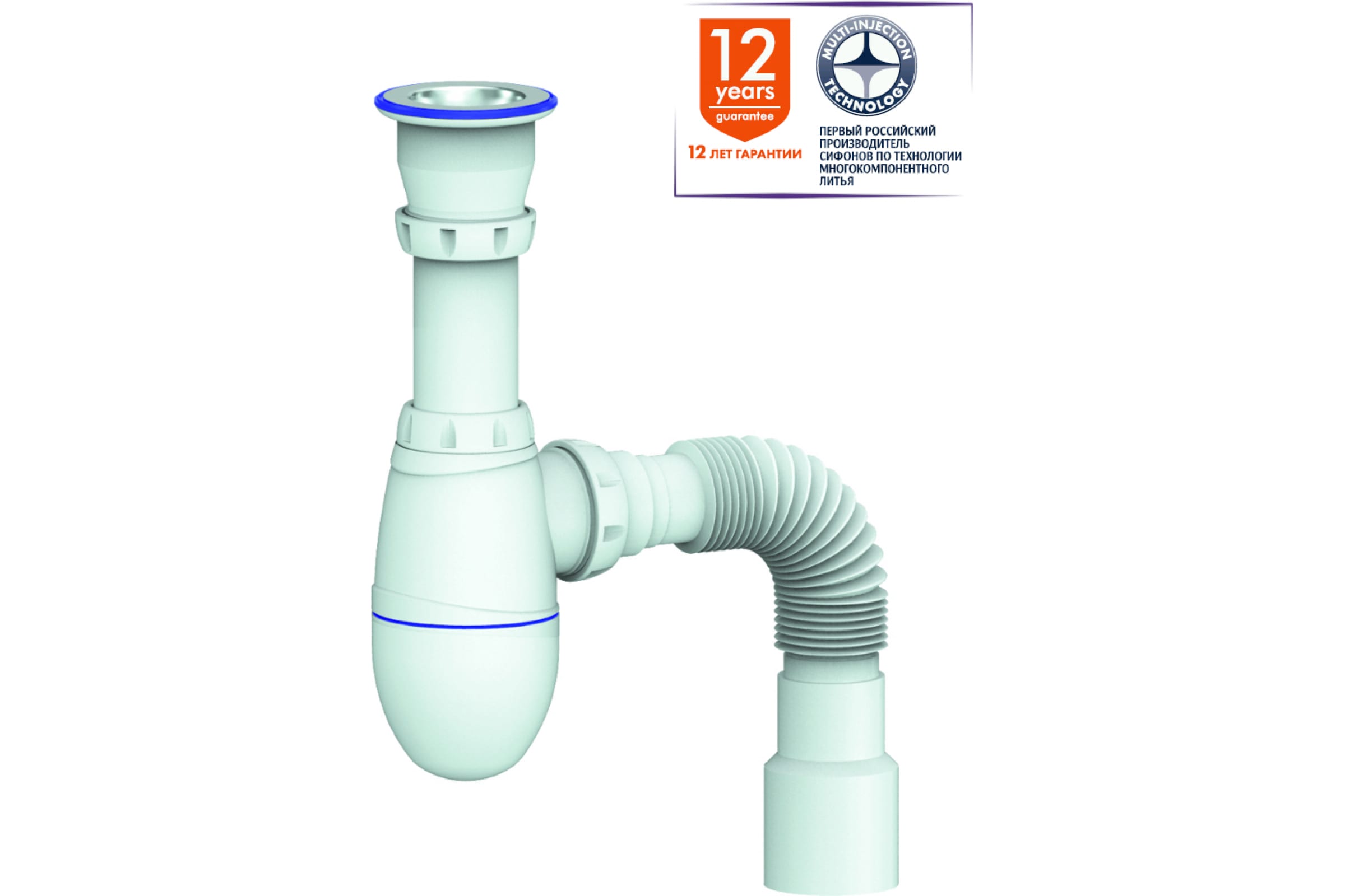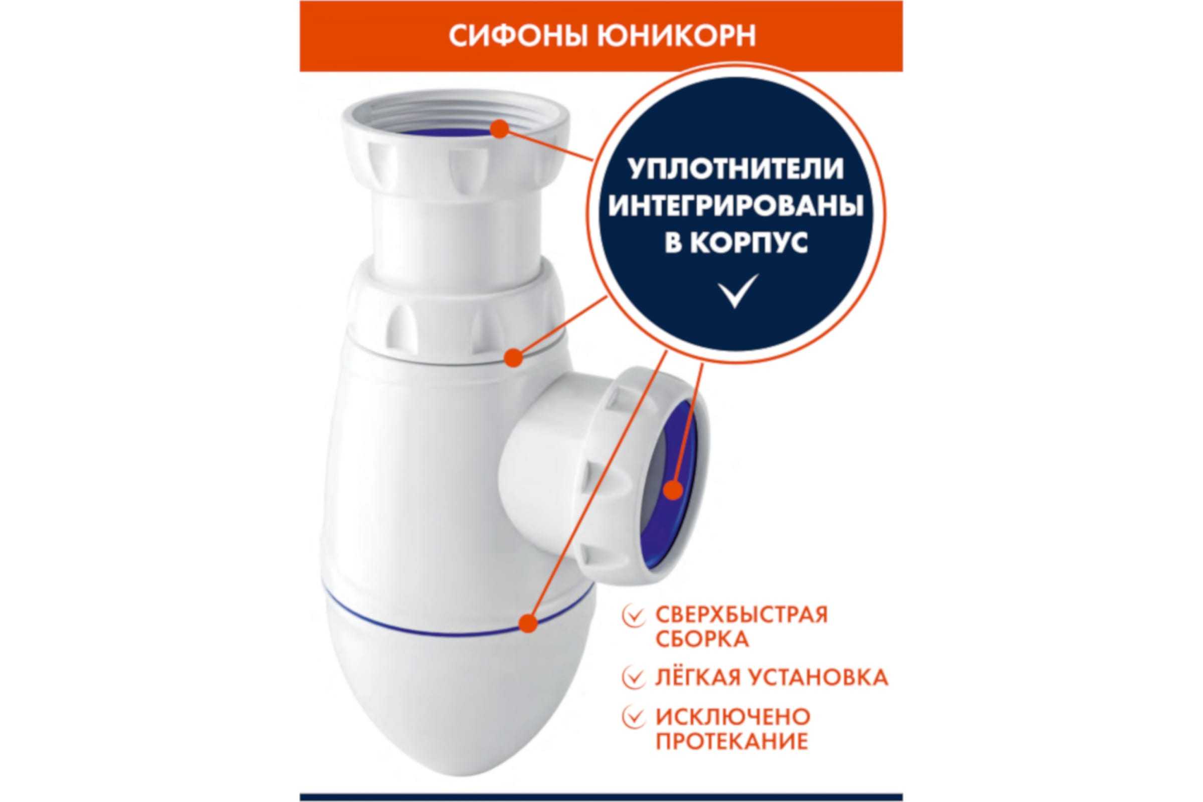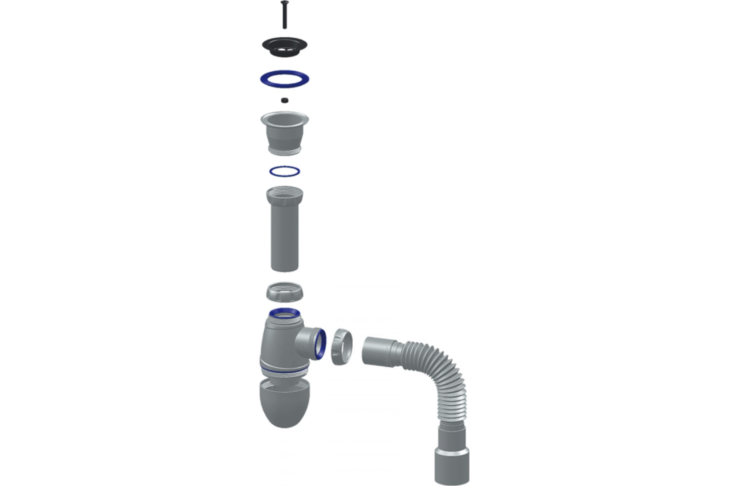 Уплотнительные прокладки сифона интегрированы в корпус, а сам сифон поставляется в максимально собранном виде, что обеспечивает сверхбыструю и простую установку сифона.