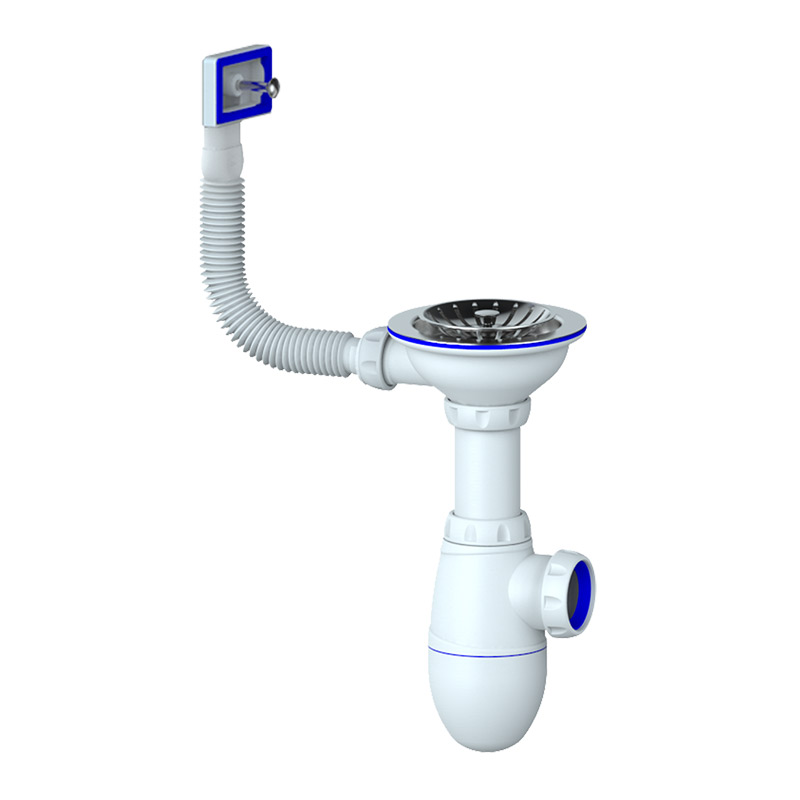 Сифон для мойки с выпуском 3 1/2"x40 и прямоугольным переливом без отвода Unicorn В410P