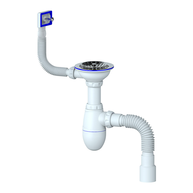 Сифон для мойки с выпуском 3 1/2"x40 с прямоугольным переливом и гибким отводом 40x40/50 Unicorn В425P