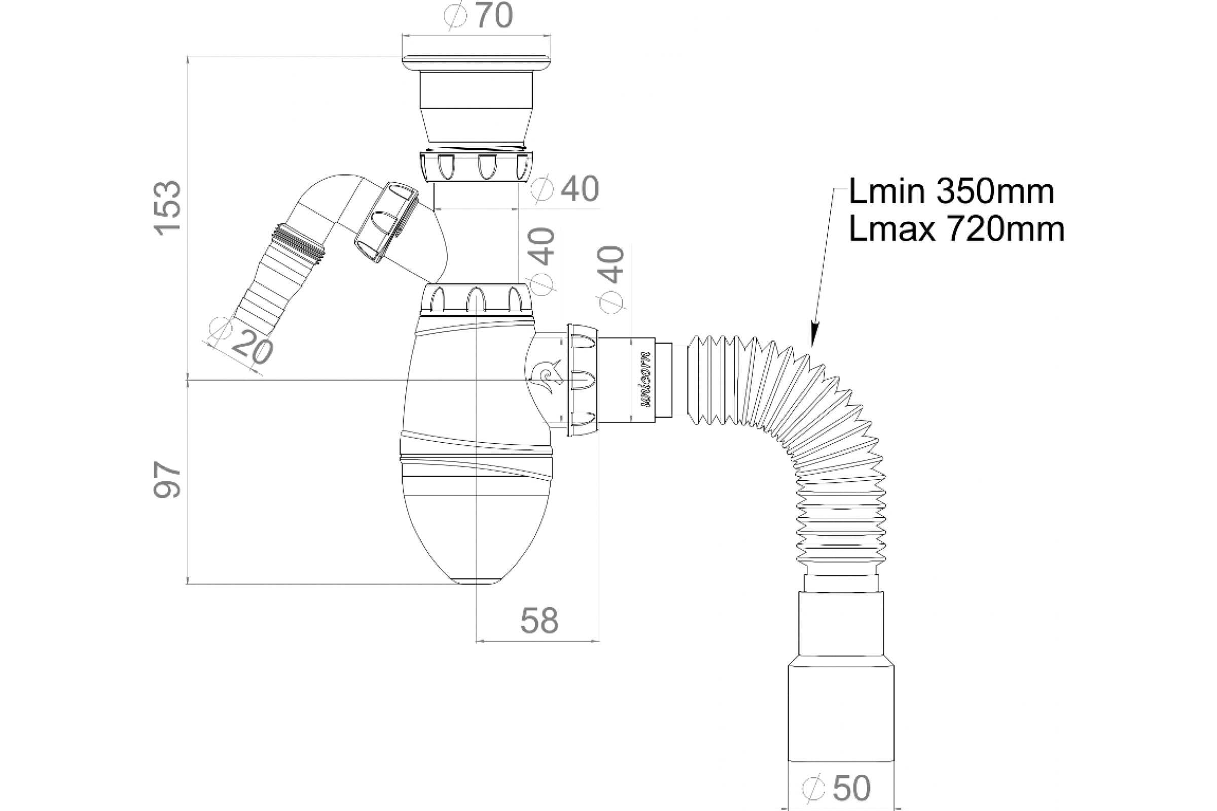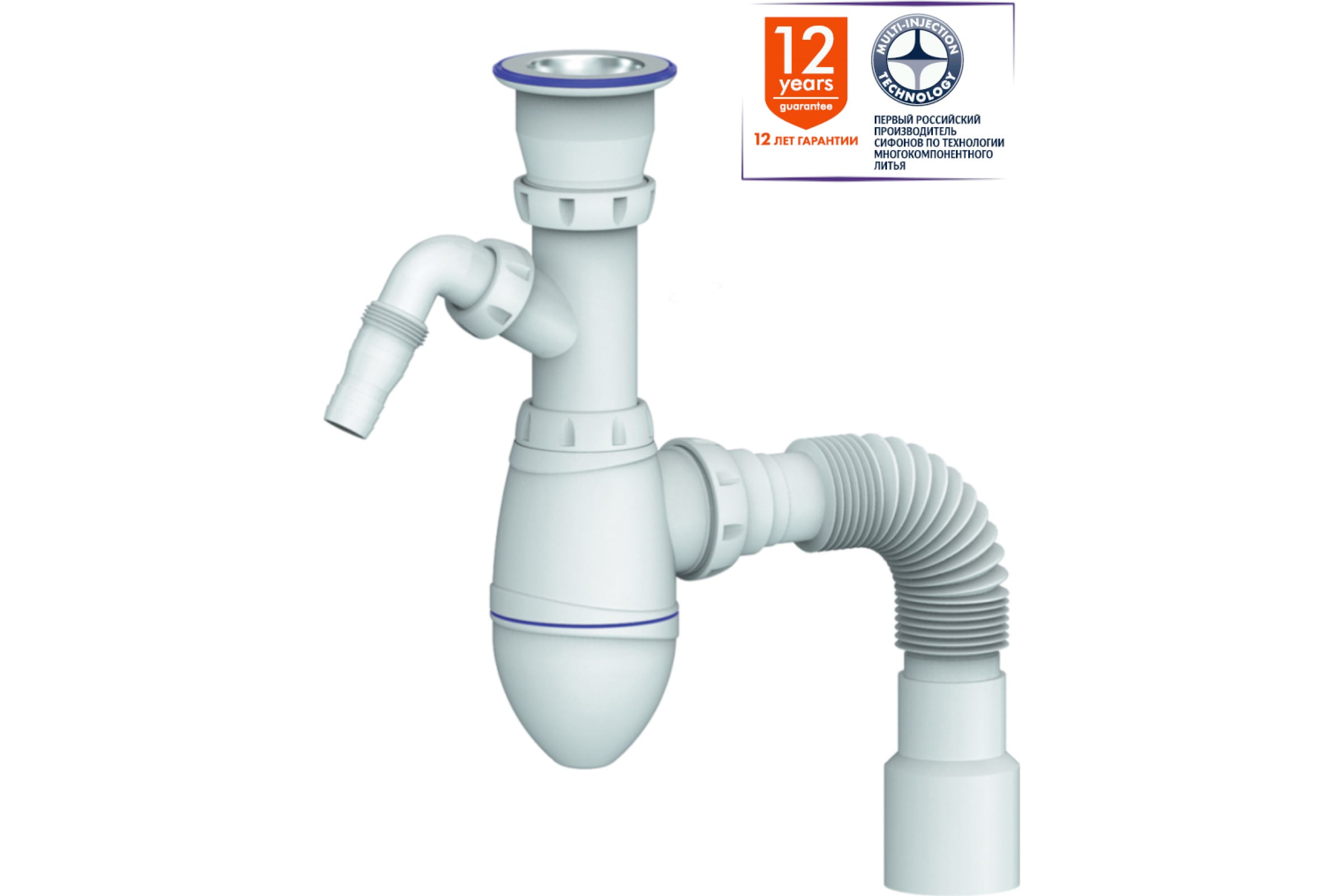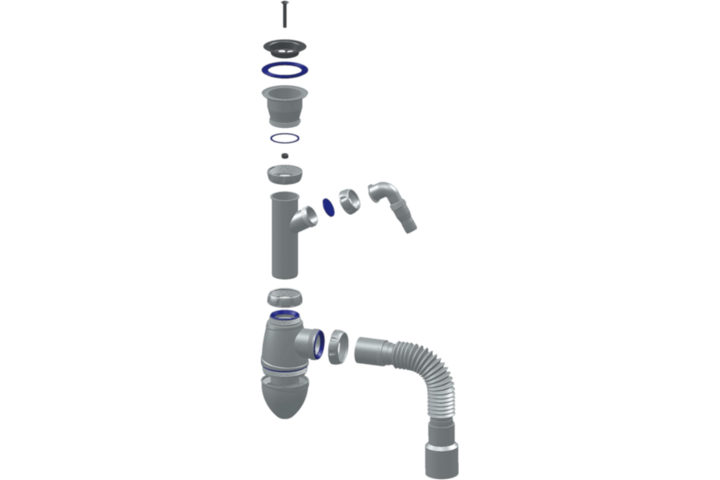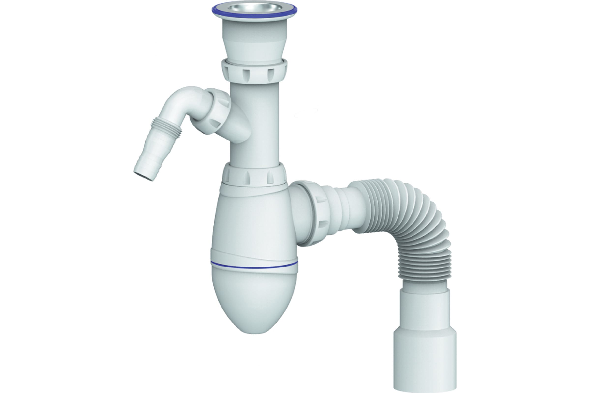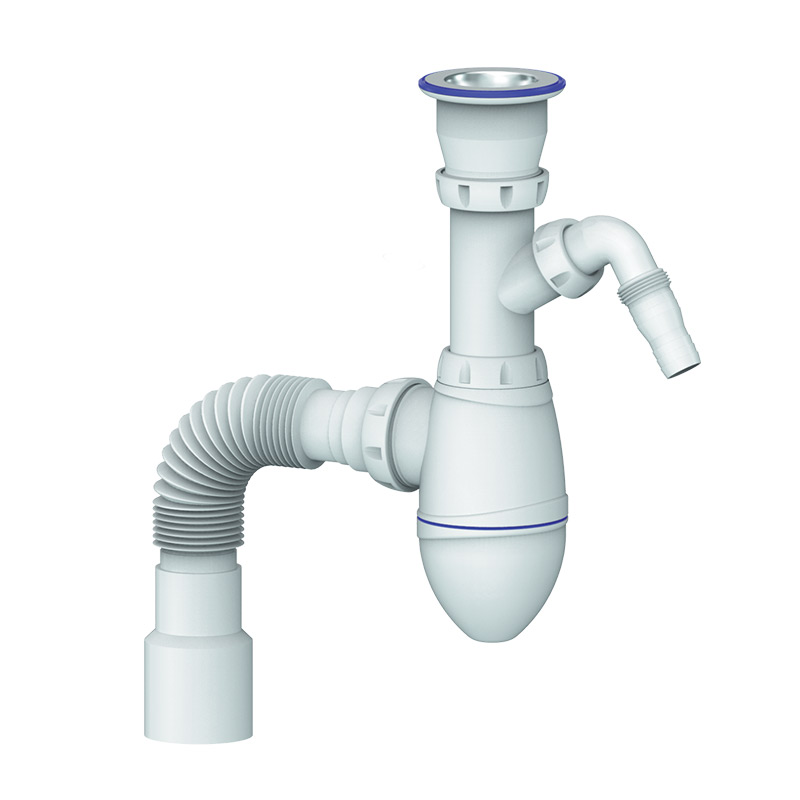 Уплотнительные прокладки сифона интегрированы в корпус, а сам сифон поставляется в максимально собранном виде, что обеспечивает сверхбыструю и простую установку сифона.
