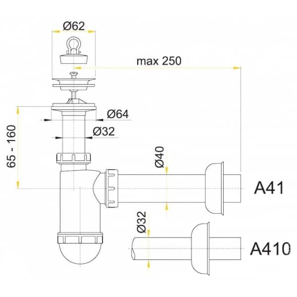 Сифон для раковины AlcaPlast Sanit хромированная решетка (A41)