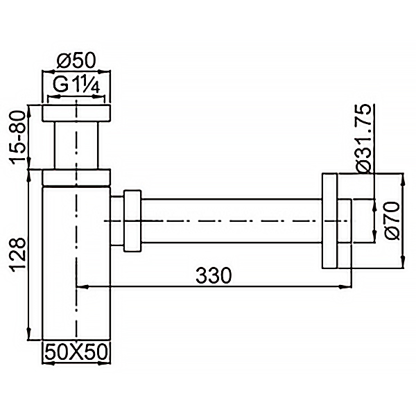 Сифон для раковины Azario 1 1/4" без выпуска, хром, квадратный (AZ-109-CHR)