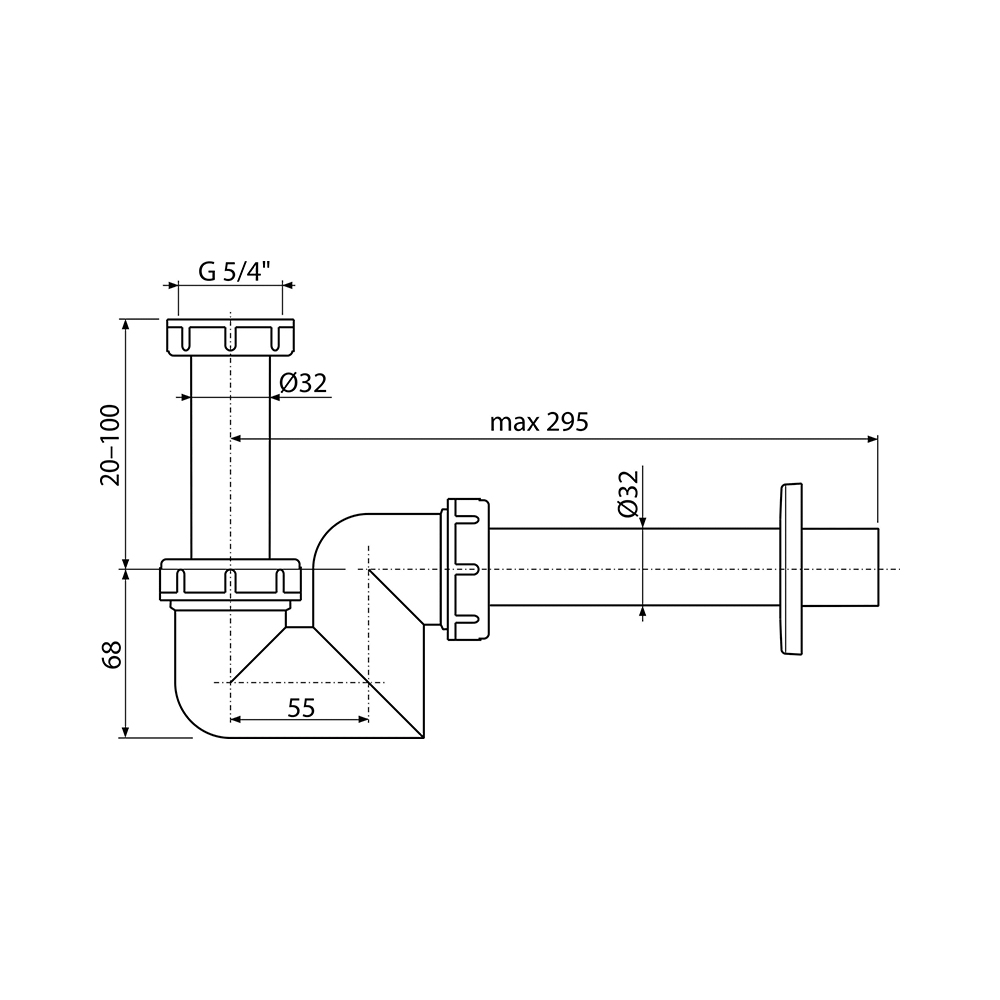 Сифон для раковины и биде Alcaplast DN32 пластик (A45F-DN32)