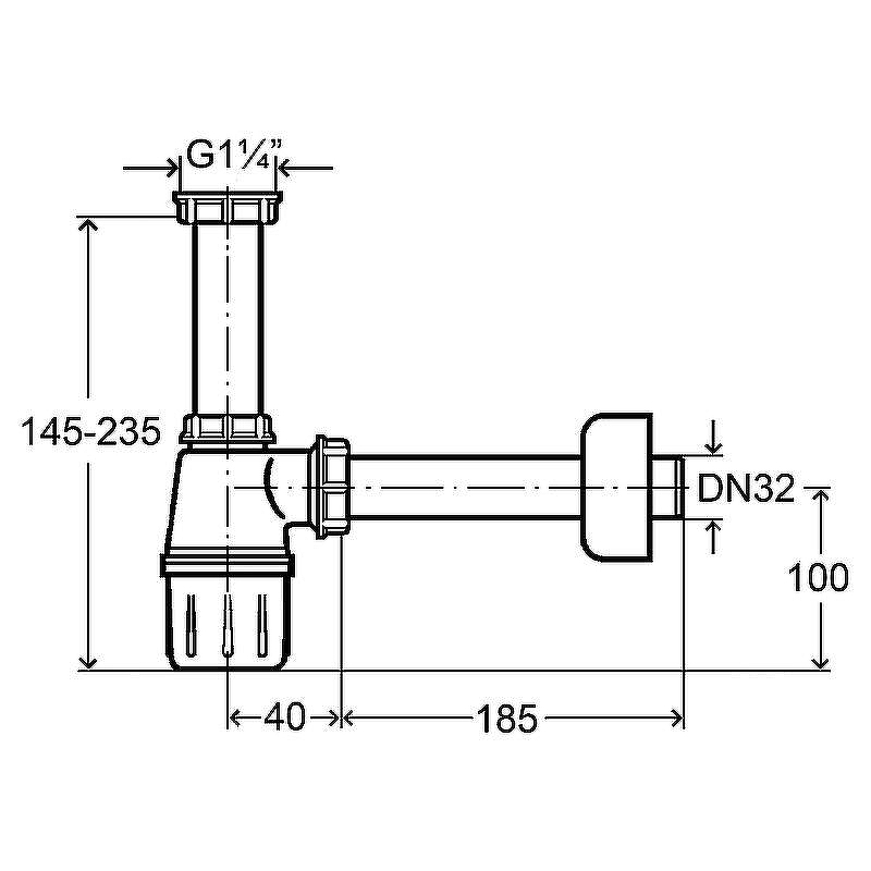 Полипропиленовый сифон бутылочного типа для раковины, с отводом 32 мм и надвижной розеткой.