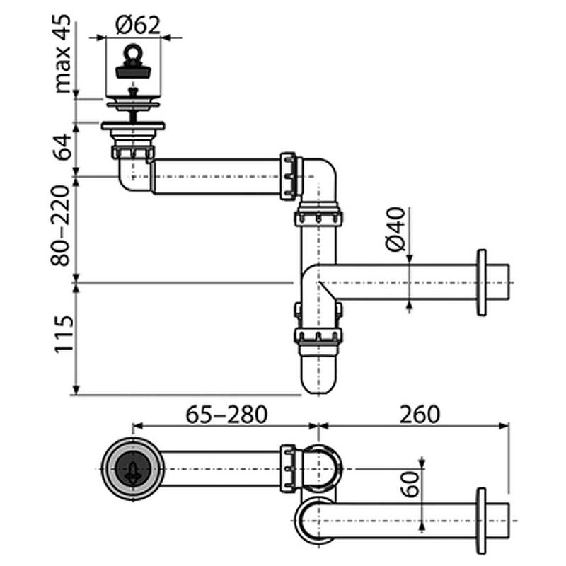 Сифон для умывальников пристенный экономящий пространство AlcaPlast (ZRU9307585)