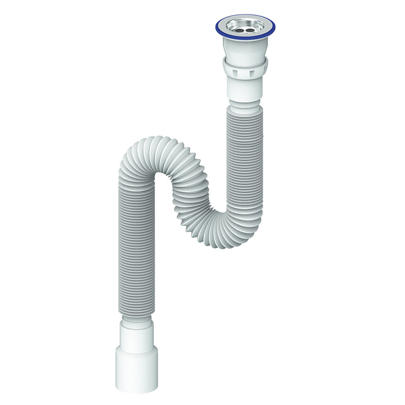 Сифон гофрированный 1 1/2"x40 с н/ж чашкой с прикручивающимся выпуском 1200 мм Unicorn D230