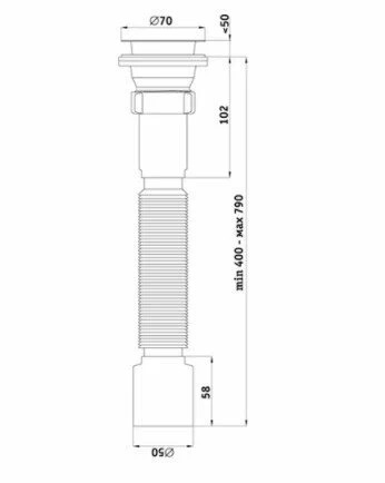 Сифон 40 мм. гофрированный с выпуском 1 1/2"(70 мм.)*50 АНИ (350-760мм) АНИ пласт (G105)