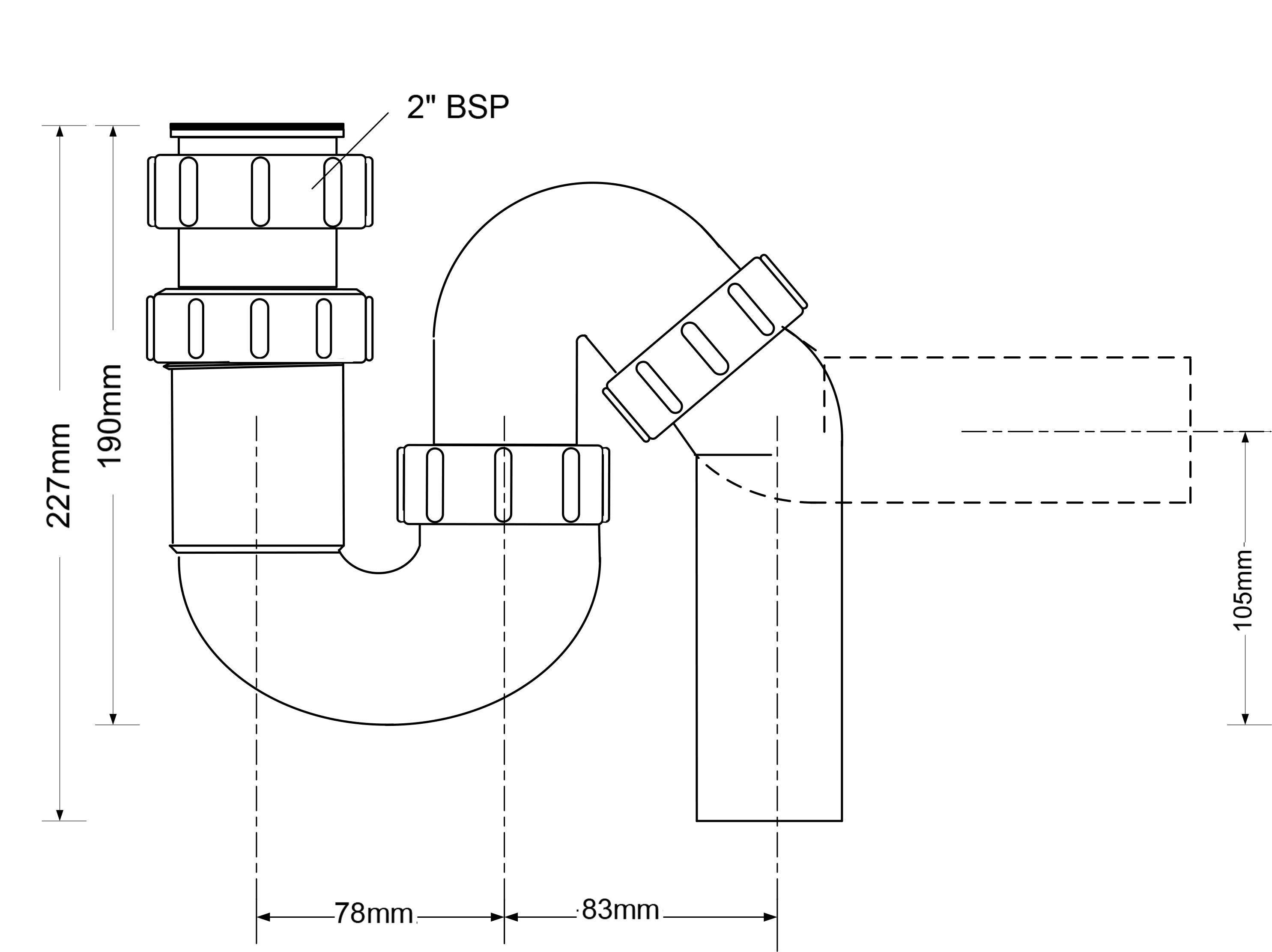 Сифон McAlpine 2"*50 мм трубный, без выпуска, с отв.трубой (5259Z)