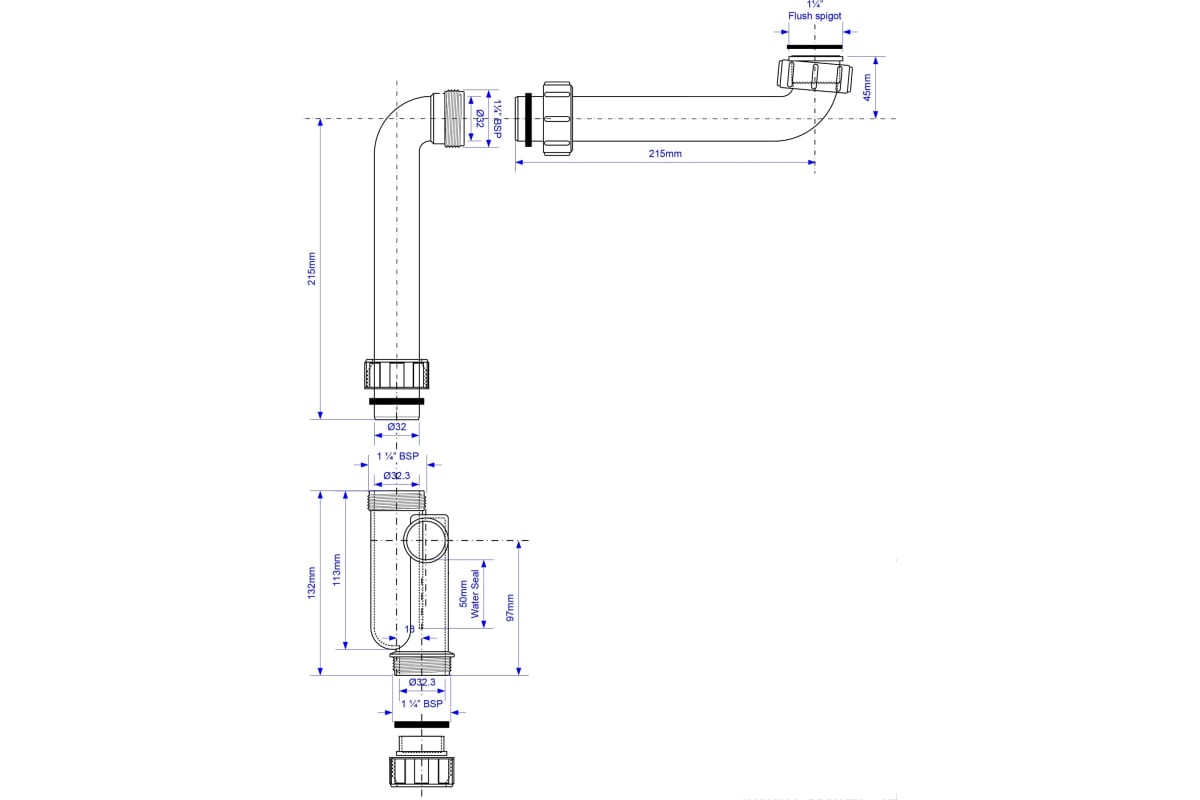 Сифон McAlpine 32 мм. трубный Р-образный 1 1/4" с отводом, вертикальный (MRCAT32-HC)
