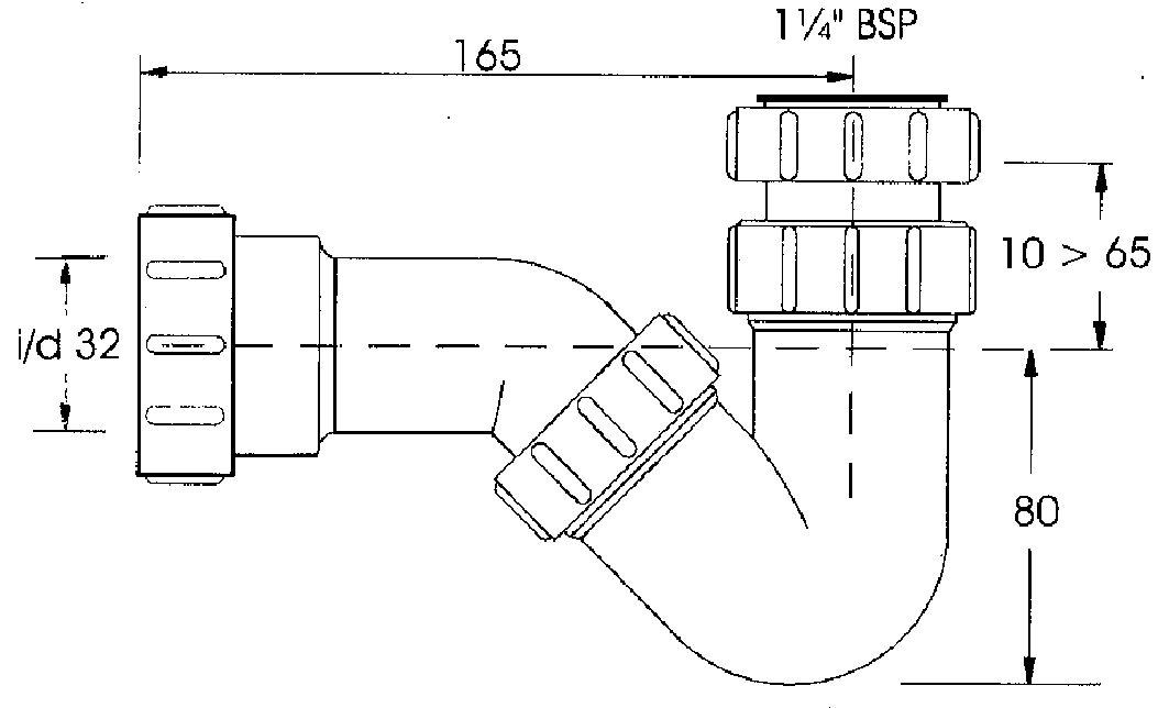 Сифон McAlpine 32 мм трубный Р/S-образный без выпуска (MRBD2)