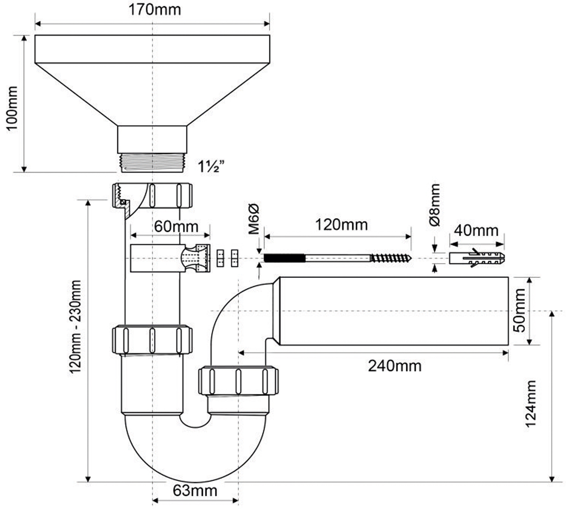 Сифон McAlpine 40 мм. трубный с разрывом потока / струи (HC7-FUN)