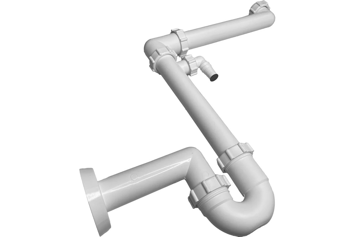Сифон Miano 40 мм. трубный S-образный с выпуском 1 1/2"x70 мм. и 1-м отводом (M0433)