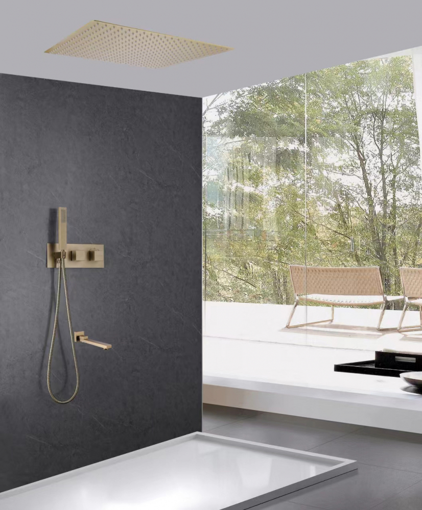 Система душевая Abber Daheim скрытого монтажа с изливом, термостат, золото матовое (AF8254G)