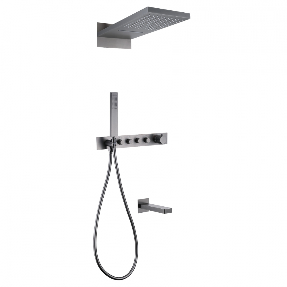 Система душевая Abber Rund скрытого монтажа с изливом, термостат, никель (AF8753NG)