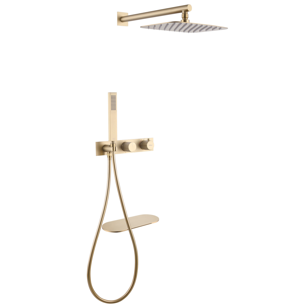 Система душевая Abber Rund скрытого монтажа с изливом, термостат, золото матовое (AF8750G)