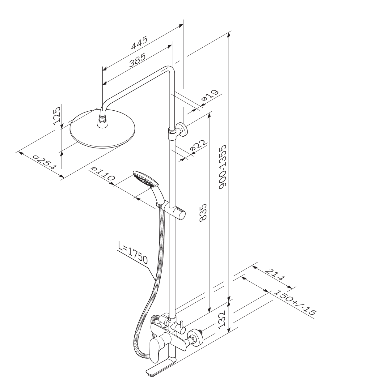 Высоту телескопической поворотной штанги можно варьировать от 103 до 146 см.