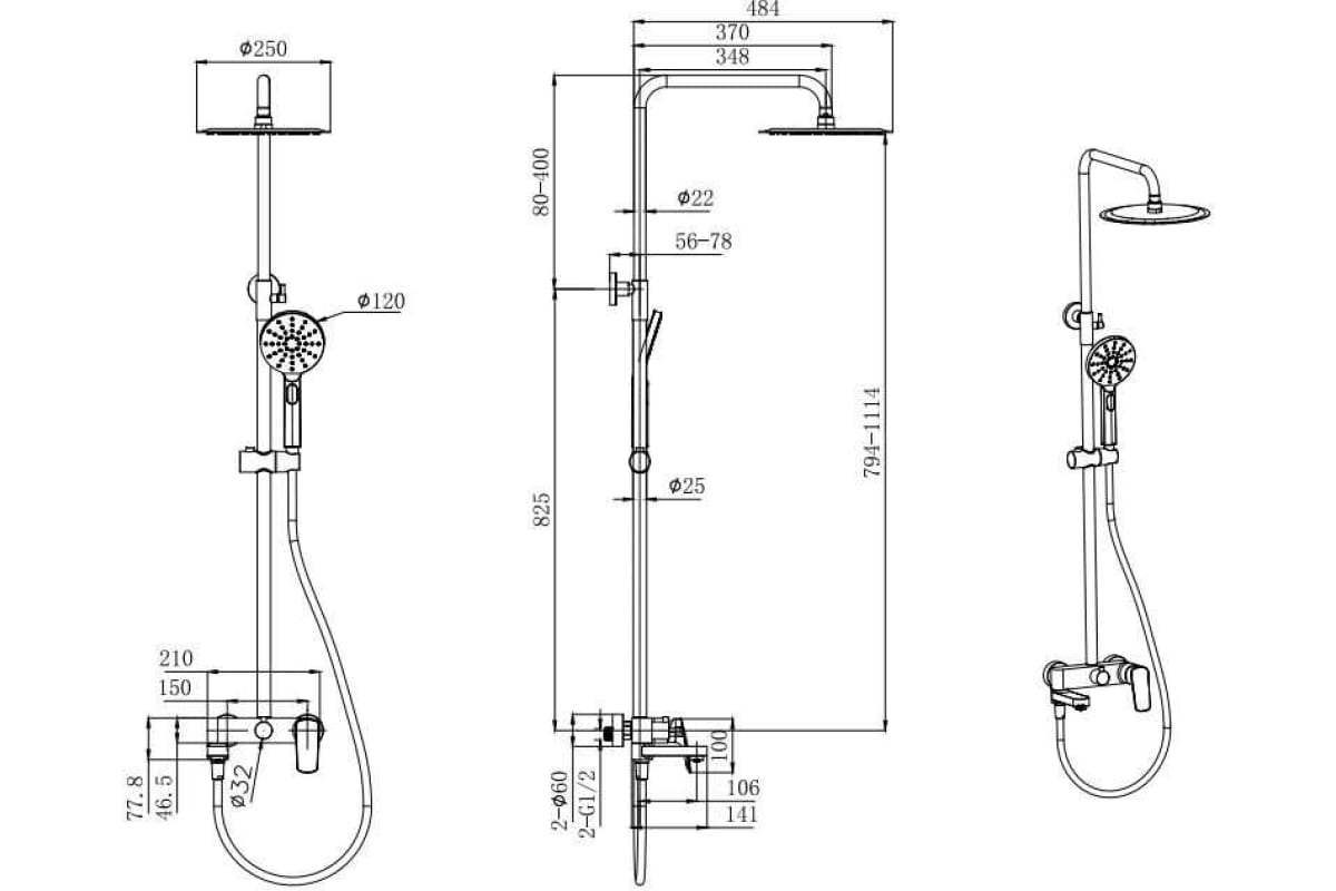 Система душевая Aquatek черный матовый (AQ2040MB)