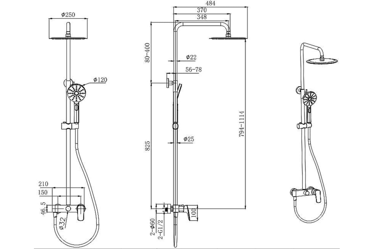 Система душевая Aquatek черный матовый (AQ2060MB)